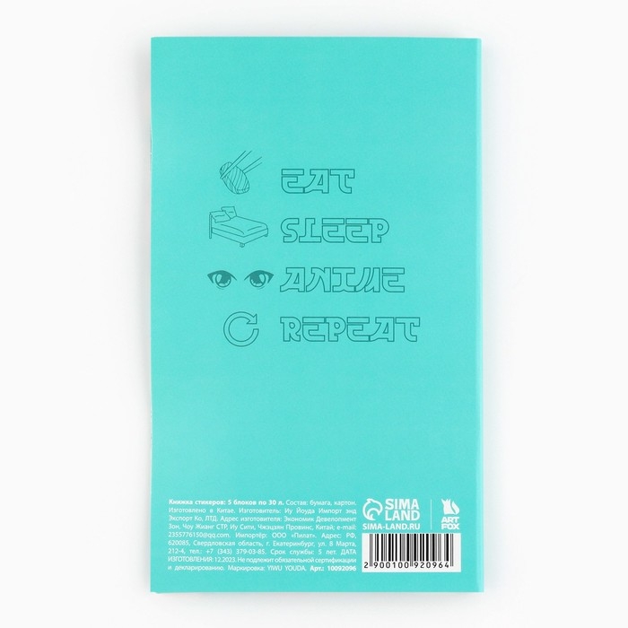 Книжка стикеров «Аниме», 5 блоков, 30 л