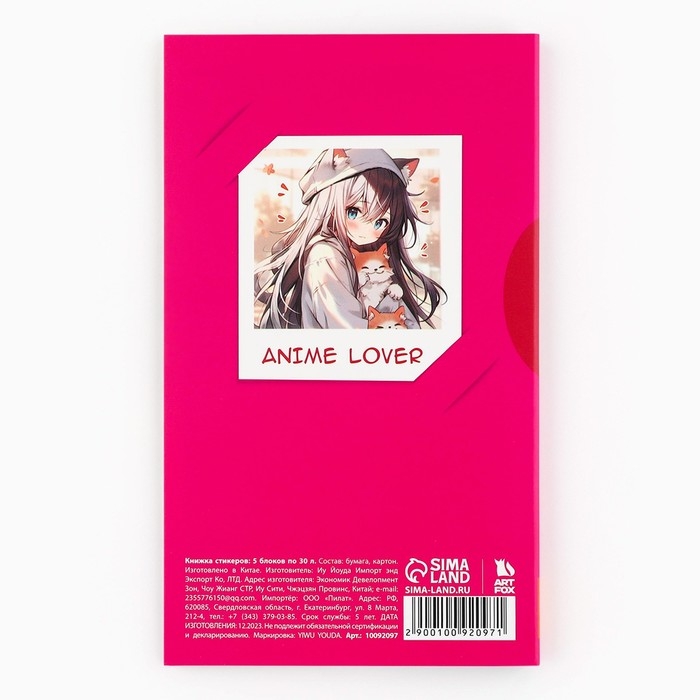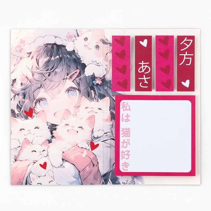 Книжка стикеров «Аниме девочка с кошкой», 5 блоков, 30 л