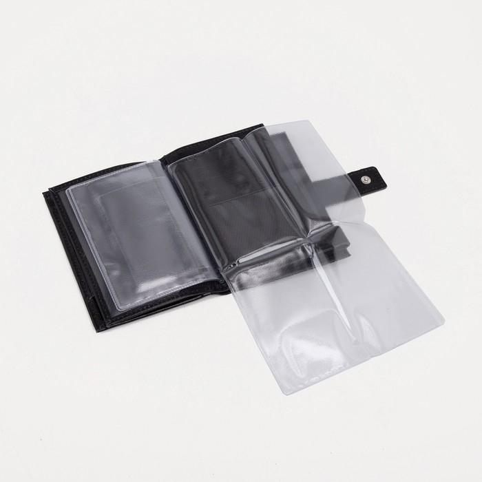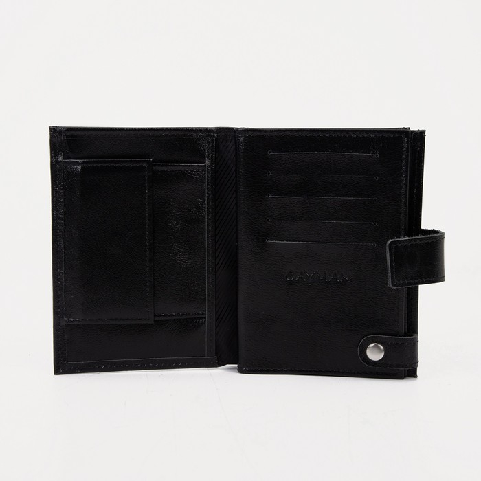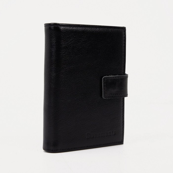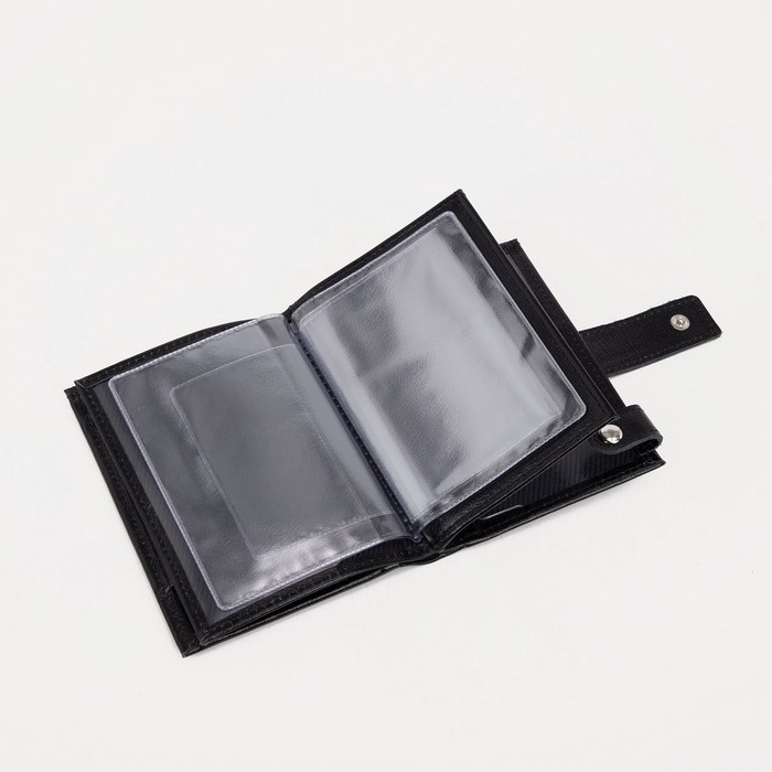 Портмоне мужское на кнопке, отдел для автодокументов и паспорта, цвет чёрный