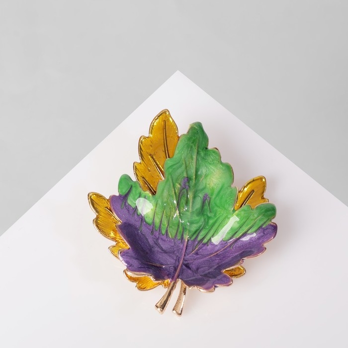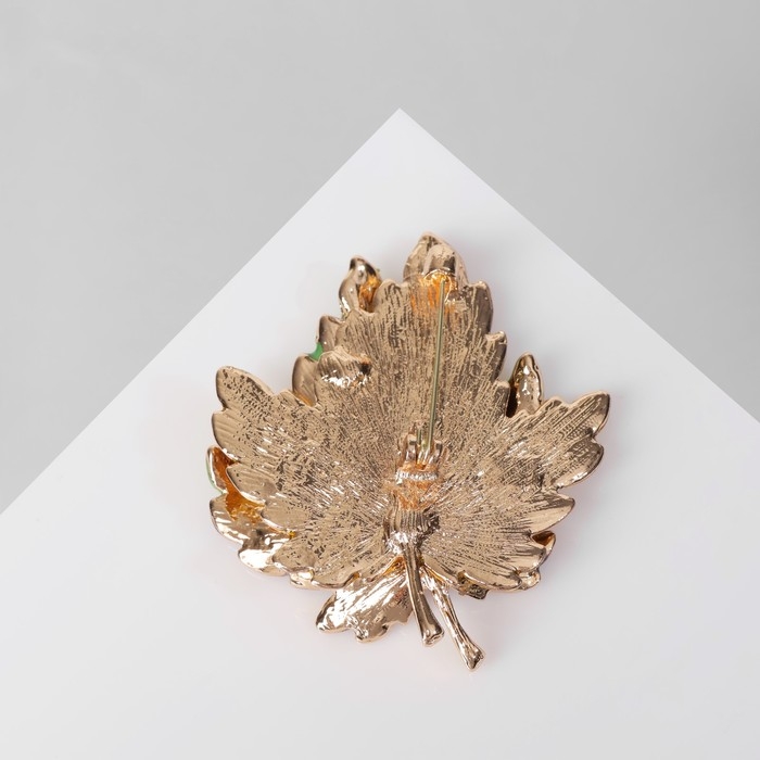 Брошь «Лист» кленовый двойной, цветная в золоте