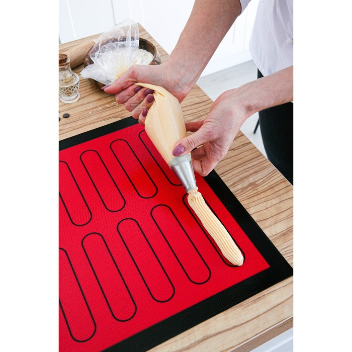 Армированный коврик для выпечки «Эклер», силикон, 60×40 см, цвет красный