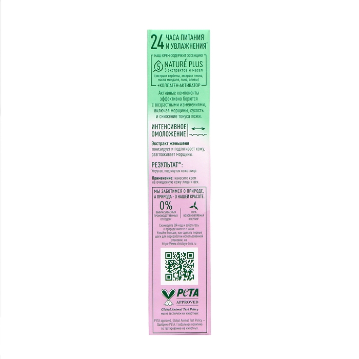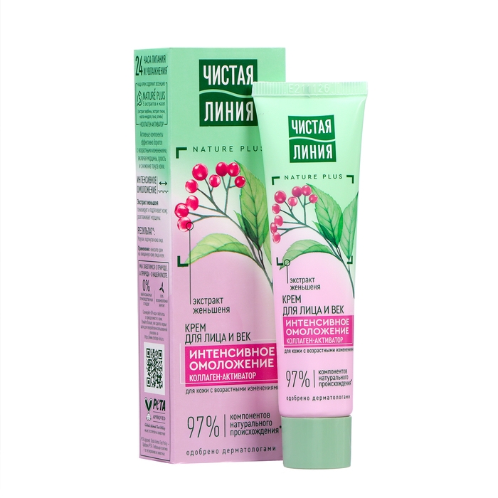 Позаботьтесь о красоте своей кожи вместе с кремом-омоложением для век и лица Чистая Линия. Он содержит 97% компонентов натурального происхождения*. Активные компоненты эффективно борются с возрастными изменениями, включая морщины, сухость и снижение тонуса кожи.