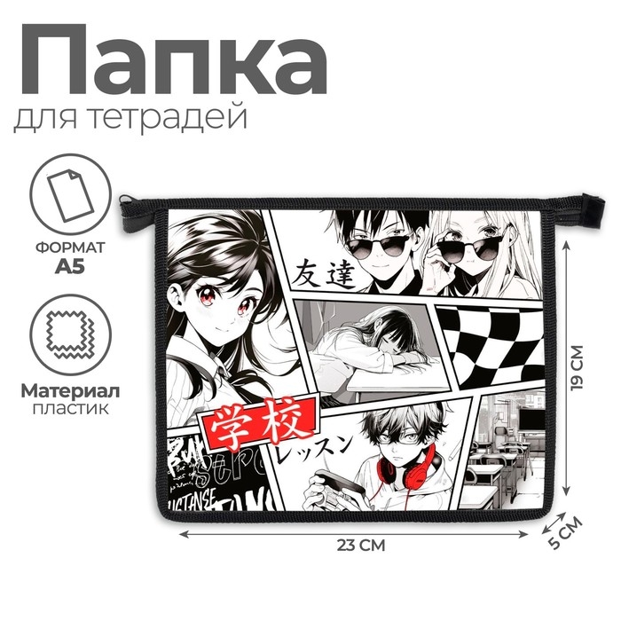 Папка для тетрадей А5, 230 х 190 х 50 мм, молния сверху, пластиковая, Calligrata "Аниме"