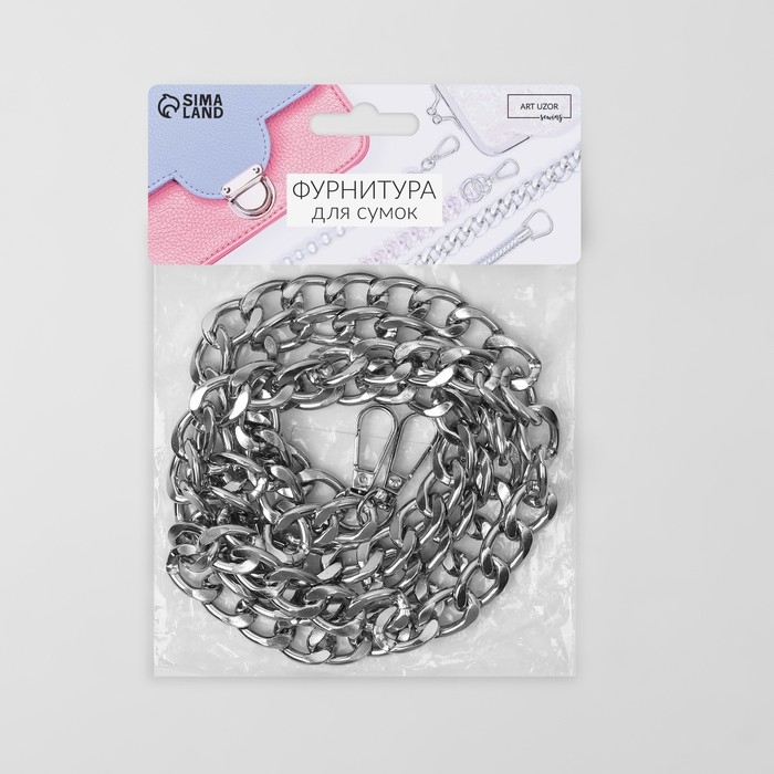 Цепочка для сумки, с карабинами, 14 × 18 мм, 60 см, цвет серебряный