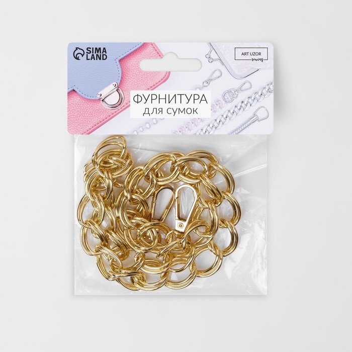 Цепочка для сумки, с карабинами, 14 × 10 мм, 60 см, цвет золотой