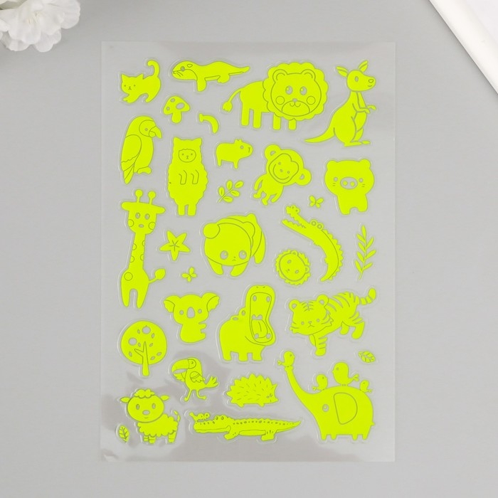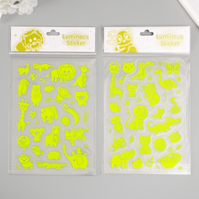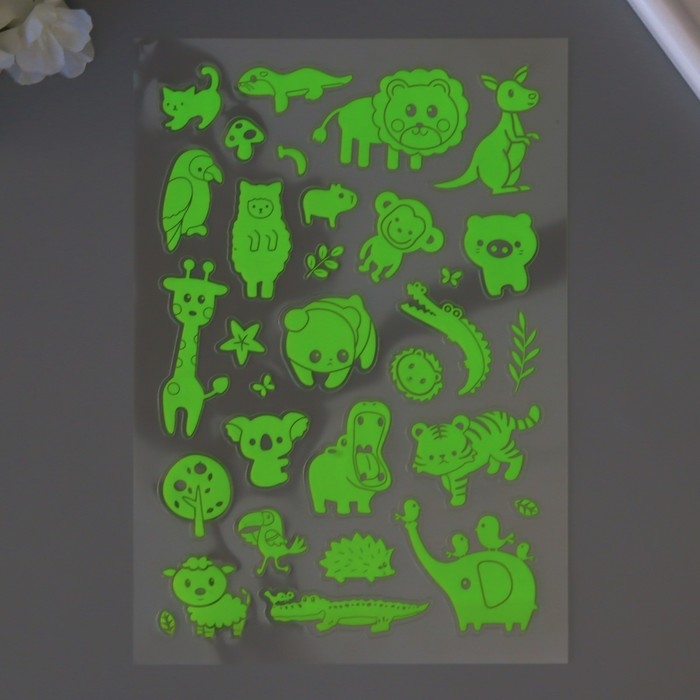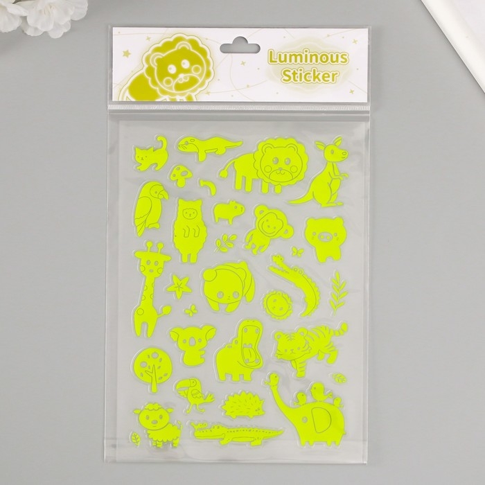 Наклейка пластик фосфорная "Удивительные животные" МИКС 27х15,5 см