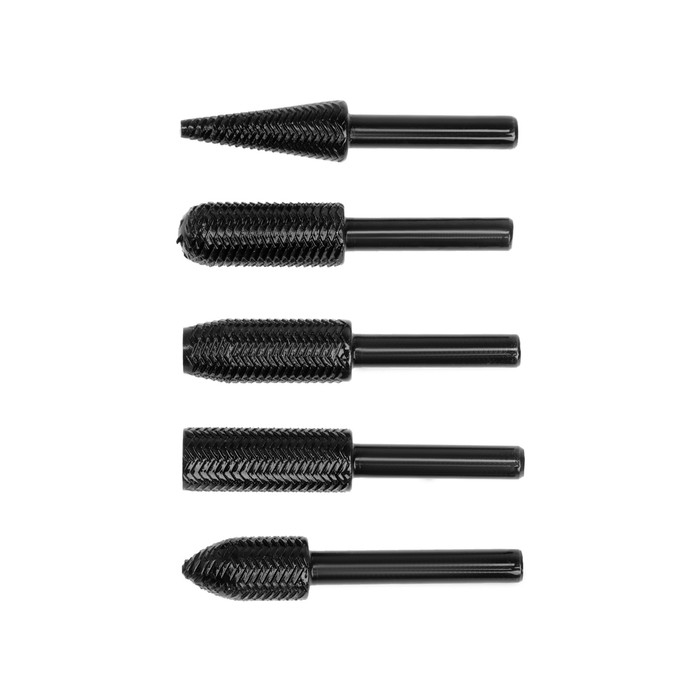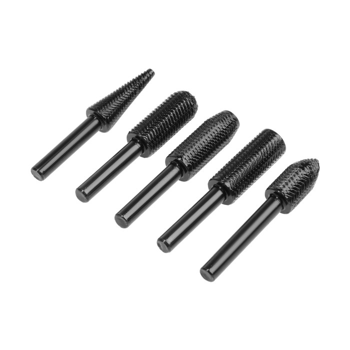 Набор шарошек по дереву и пластику ТУНДРА, диаметр хвостовика 6 мм, 5 шт.