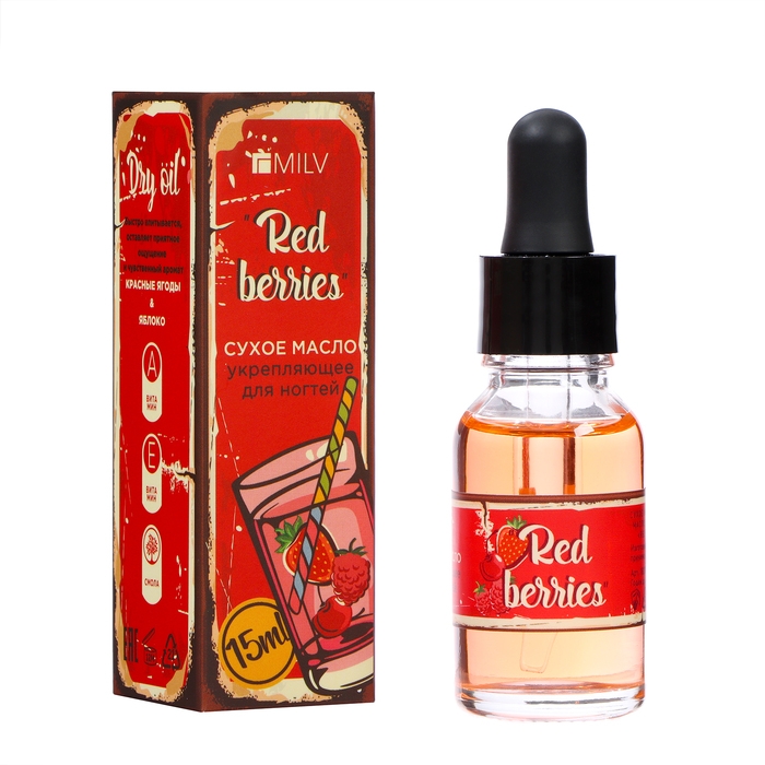 Сухое укрепляющее масло для ногтей MILV красные ягоды, 15 мл