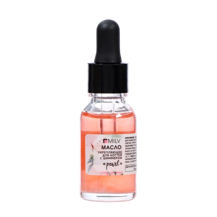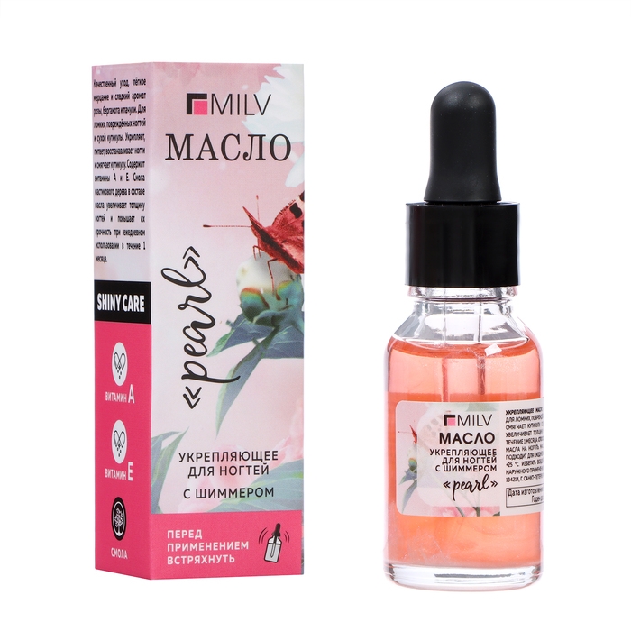 Масло для ногтей укрепляющее со смолой мастикового дерева и шиммером MILV жемчужина, 15 мл
