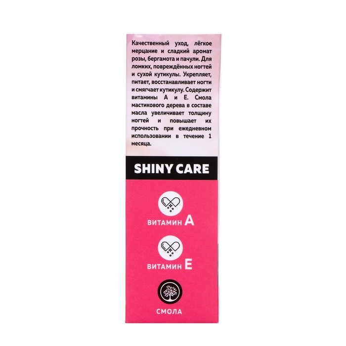 Качественный уход, лёгкое мерцание и сладкий аромат розы, бергамота и пачули. Для ломких, повреждённых ногтей и сухой кутикулы. Укрепляет, питает, восстанавливает ногти и смягчает кутикулу. Содержит витамины А и Е. Смола мастикового дерева в составе масла увеличивает толщину ногтей и повышает их прочность при ежедневном использовании в течение 1 месяца.