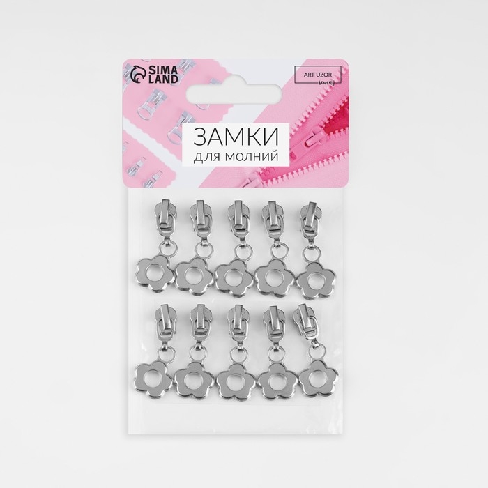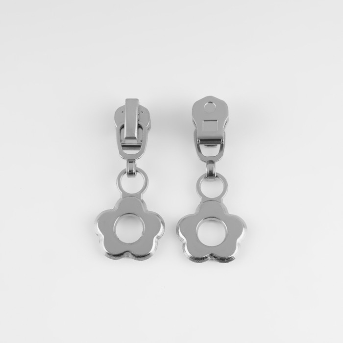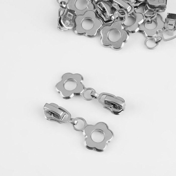 Бегунок автоматический для металлической молнии, №3, декоративный «Цветок», 10 шт, цвет никель
