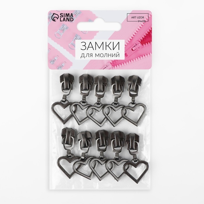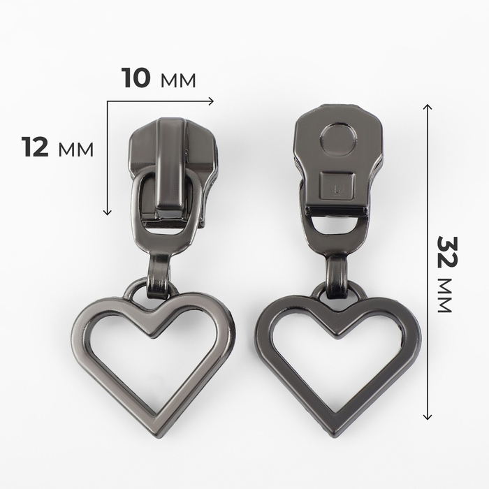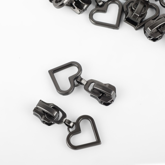 Бегунок автоматический для металлической молнии, №5, декоративный «Сердце», 10 шт, цвет чёрный никель