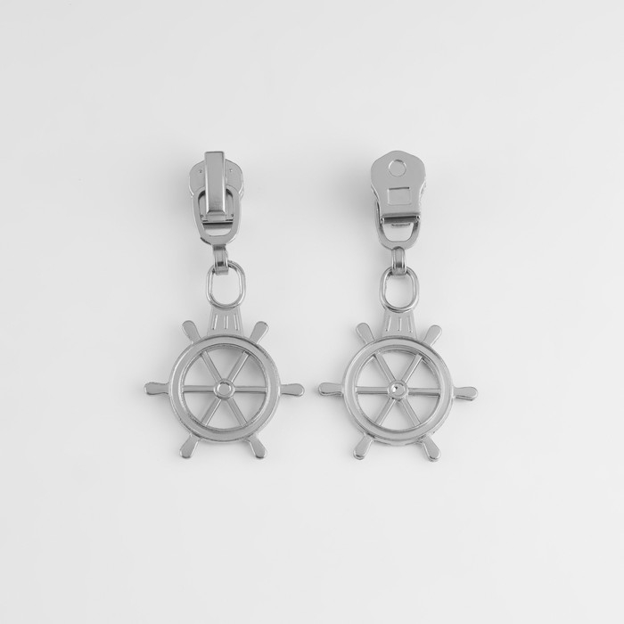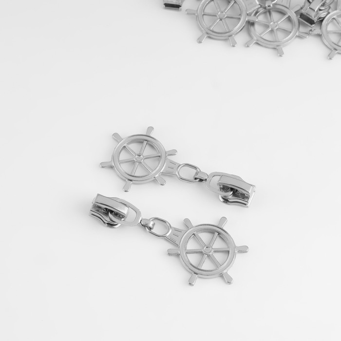 Бегунок автоматический для металлической молнии, №3, декоративный «Штурвал», 10 шт, цвет никель