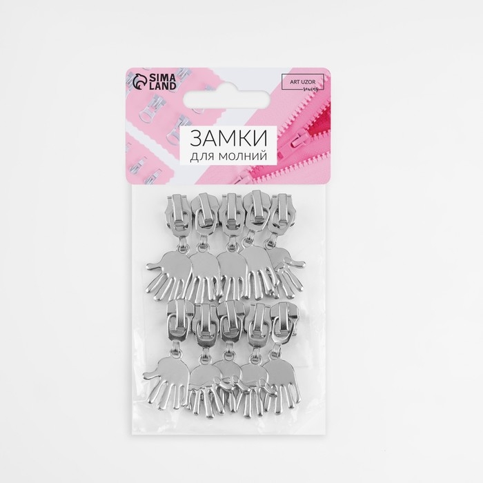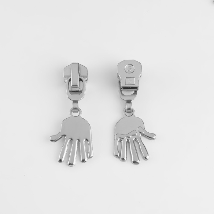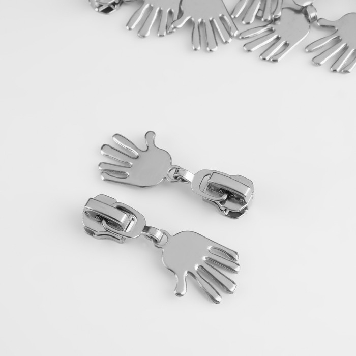 Бегунок автоматический для металлической молнии, №5, декоративный «Ладонь», 10 шт, цвет никель