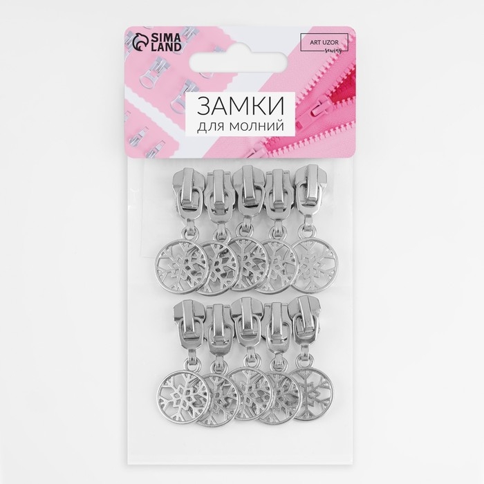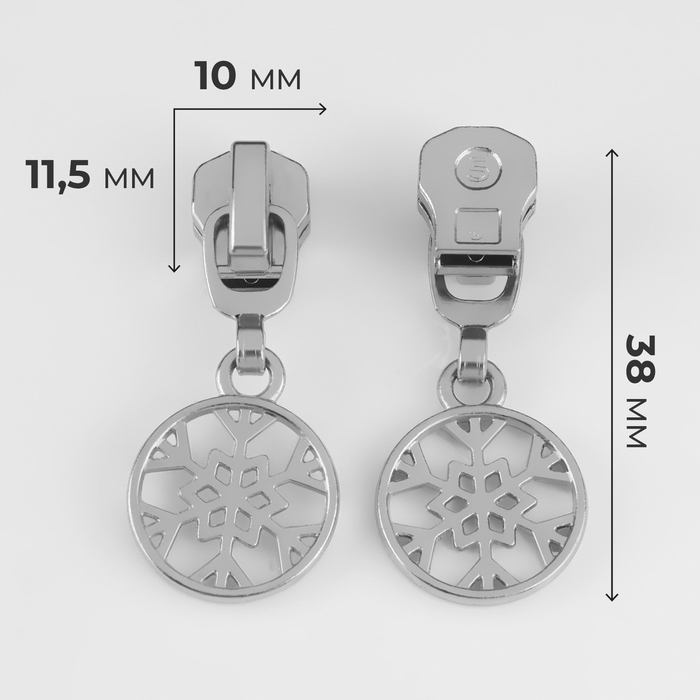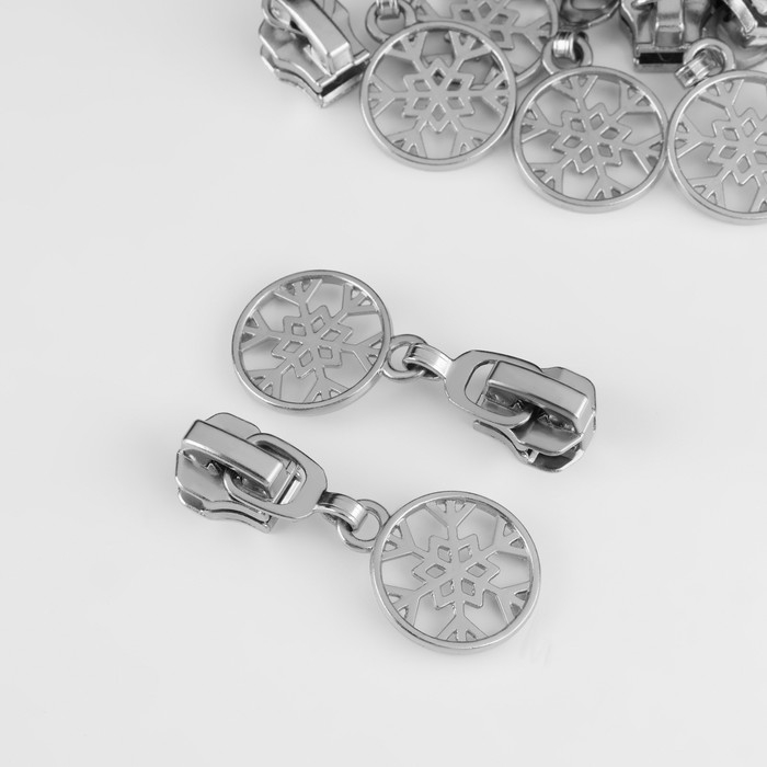 Бегунок автоматический для металлической молнии, №5, декоративный «Снежинка», 10 шт, цвет никель