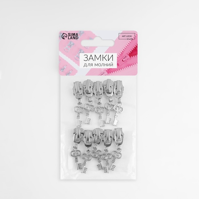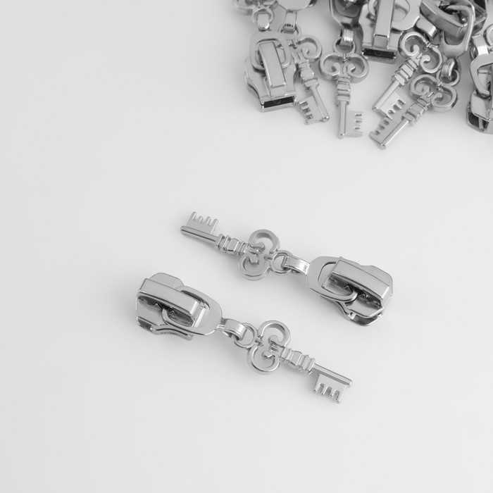 Бегунок автоматический для металлической молнии, №5, декоративный «Ключ», 10 шт, цвет никель