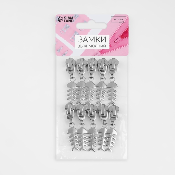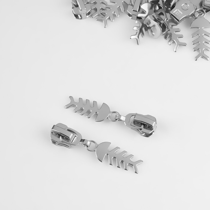 Бегунок автоматический для металлической молнии, №5, декоративный «Рыба», 10 шт, цвет никель
