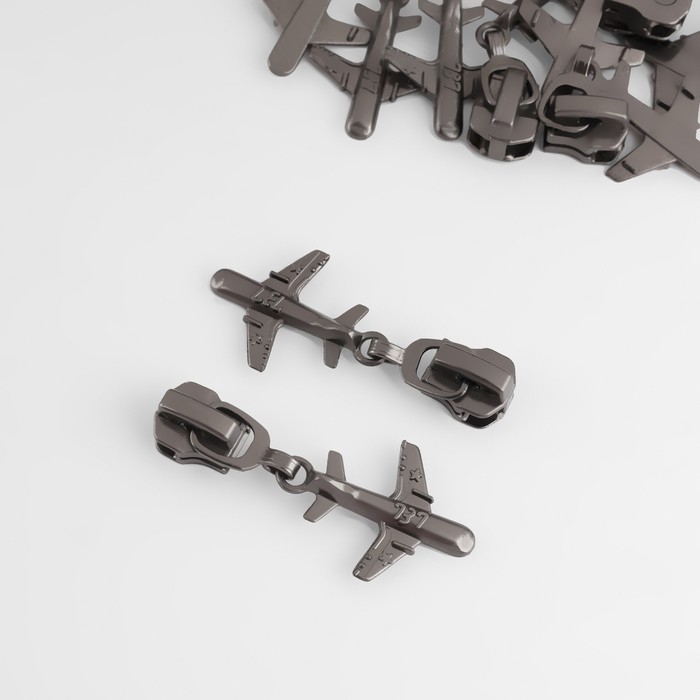 Бегунок автоматический для металлической молнии, №5, декоративный «Самолёт», 10 шт, цвет чёрный никель