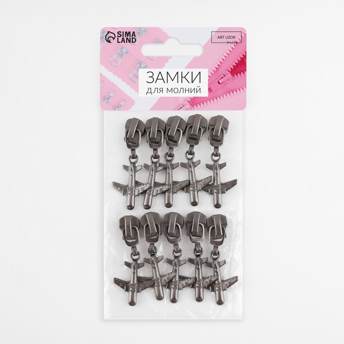 Бегунок автоматический для металлической молнии, №5, декоративный «Самолёт», 10 шт, цвет никель