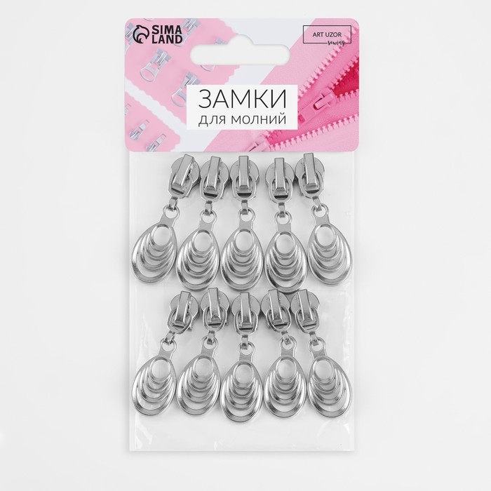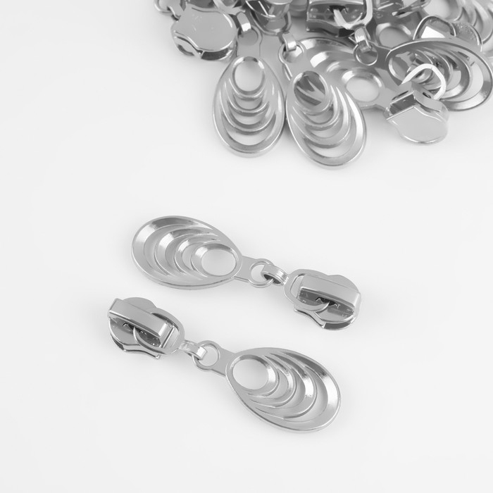 Бегунок автоматический для молнии «Спираль», №5, декоративный «Звенья», 10 шт, цвет никель