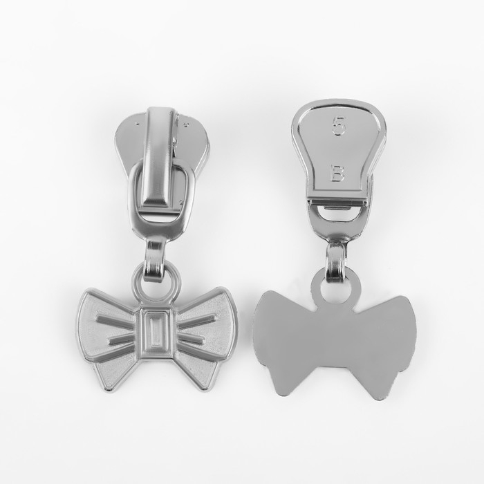 Бегунок автоматический для молнии «Трактор», №5, декоративный «Бант», 10 шт, цвет никель