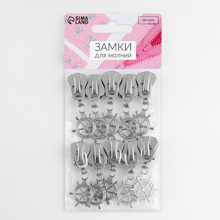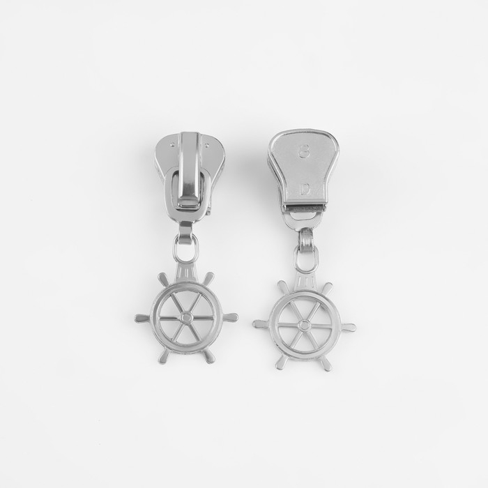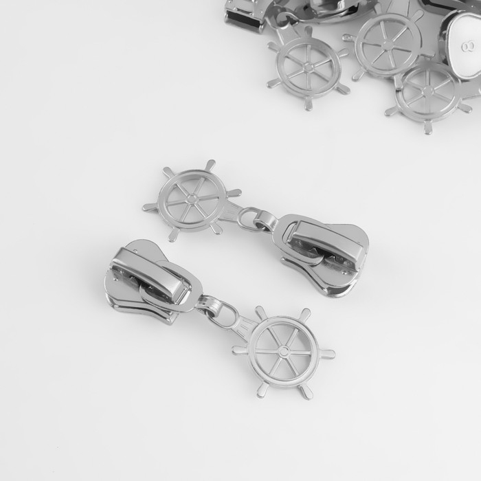 Бегунок автоматический для молнии «Трактор», №8, декоративный «Штурвал», 10 шт, цвет никель