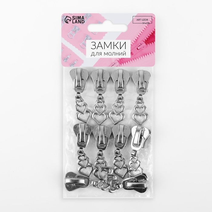Бегунок автоматический для молнии «Трактор», №8, декоративный «Сердца», 10 шт, цвет никель