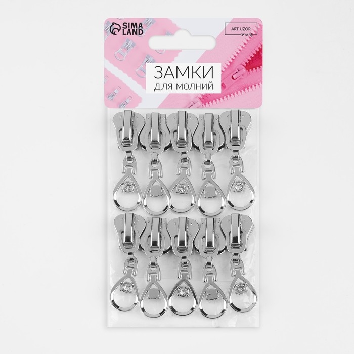 Бегунок автоматический для молнии «Трактор», №8, декоративный «Капля», 10 шт, цвет никель