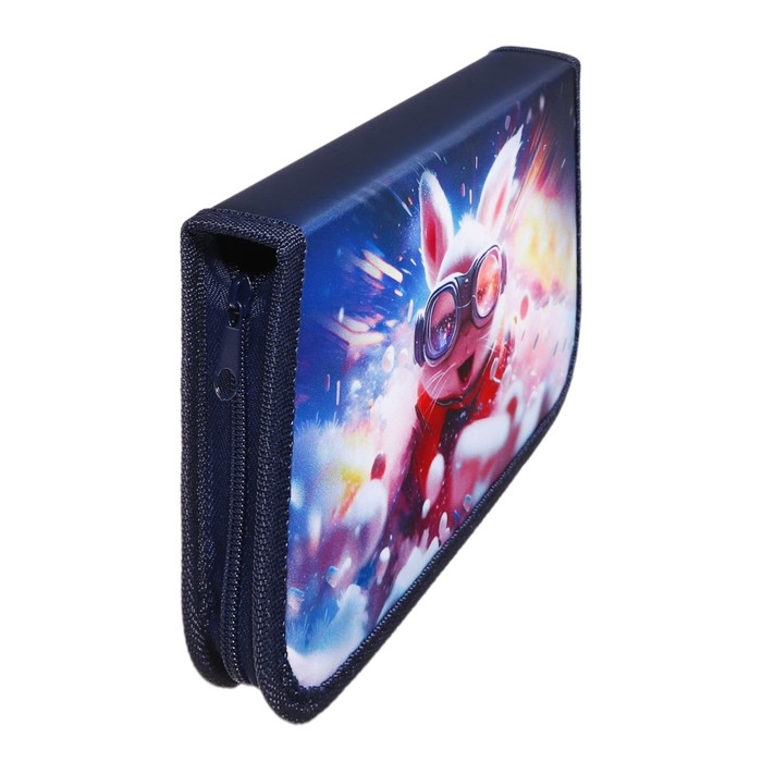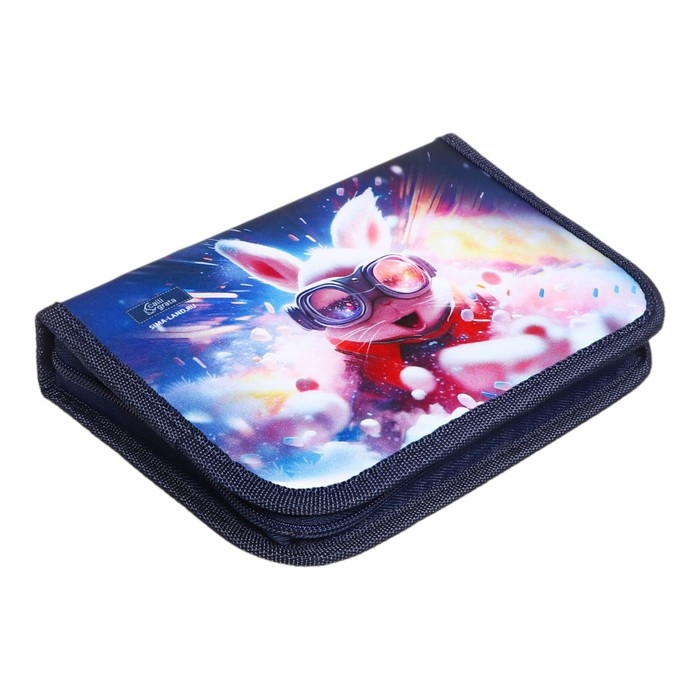 Пенал 1 секция 140 х 210 х 40 мм, откидной карман и косметичка, тканевый, Calligrata TOP Content "Супер заяц"