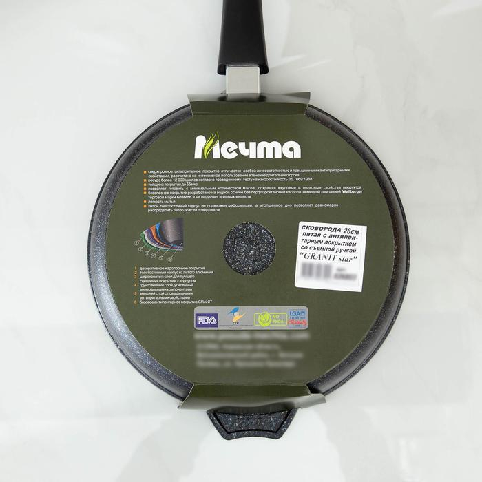 Сковорода «Гранит Star», d=26 см, съёмная ручка, антипригарное покрытие, цвет тёмно-синий