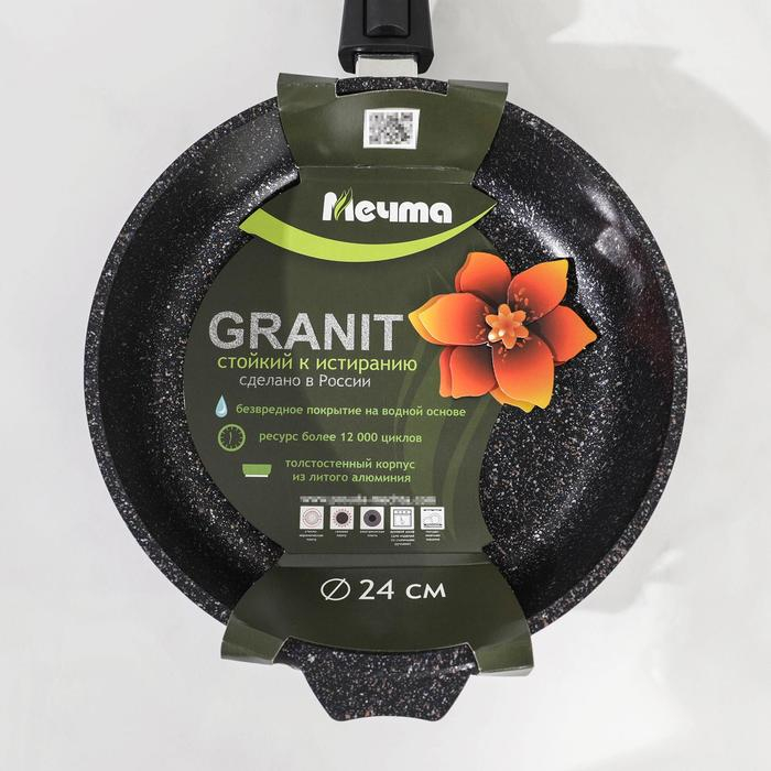 Сковорода «Гранит Star», d=24 см, съёмная ручка, антипригарное покрытие, цвет чёрный
