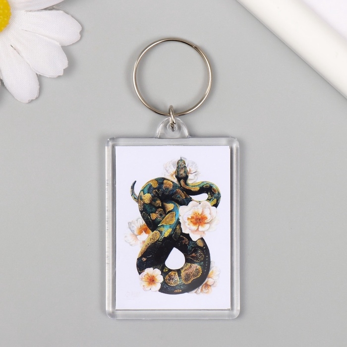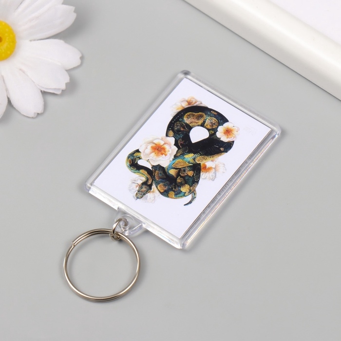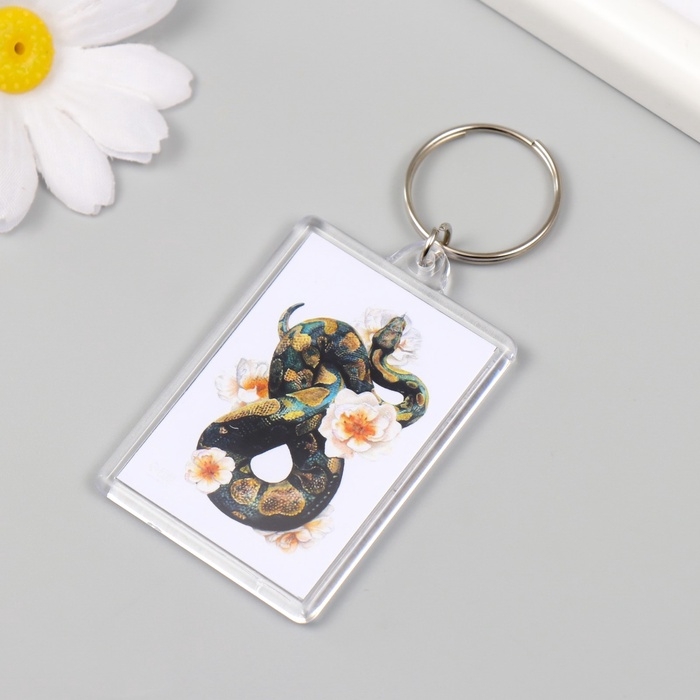 Новогодний брелок акрил "Змея с цветами" 3,5х5 см