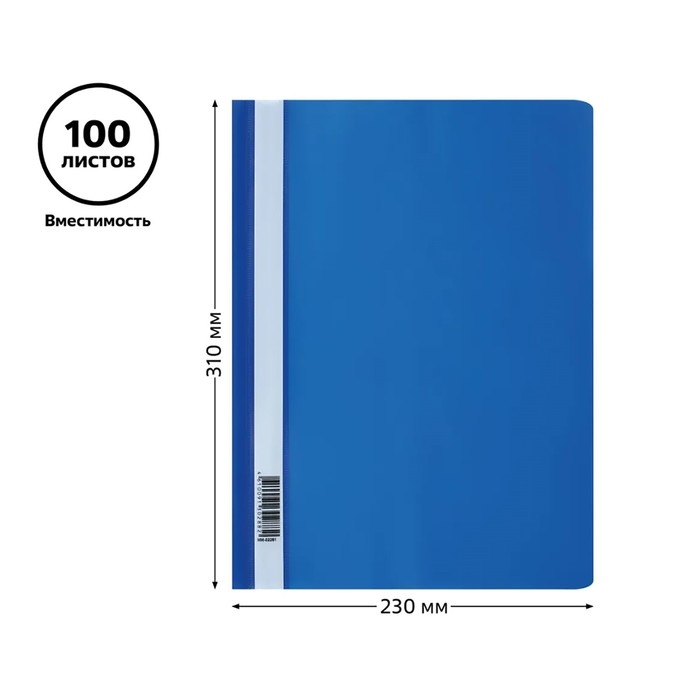 Папка-скоросшиватель Calligrata, А4, 180 мкм, карман для визитки, прозрачный верх, синяя