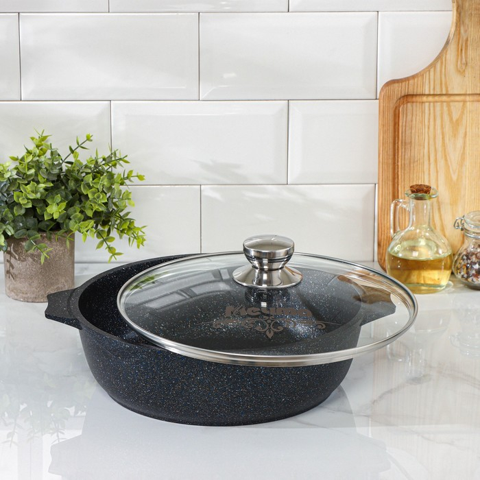 Жаровня «Гранит Black» Induction Pro, 3 л, d=28 см, стеклянная крышка, антипригарное покрытие, индукция, цвет чёрный