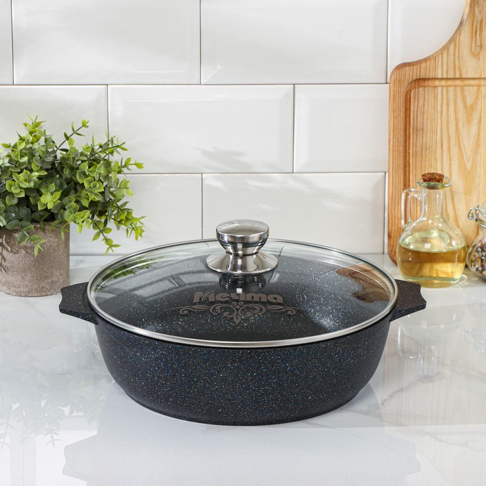 Жаровня «Гранит Star», 4 л, d=30 см, стеклянная крышка, антипригарное покрытие, тёмно-синий