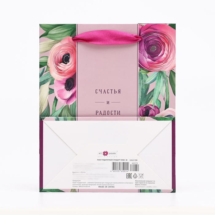 Пакет подарочный "Счастья и радости", 18 х 22,3 х 10 см