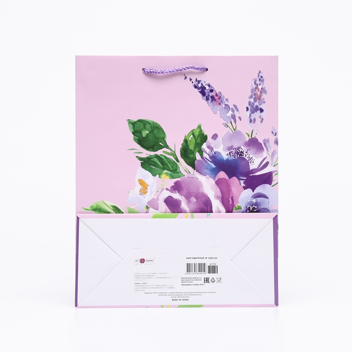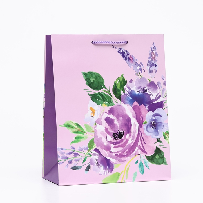 Пакет подарочный "Фиолетовый цветок", 26 х 32 х 12 см