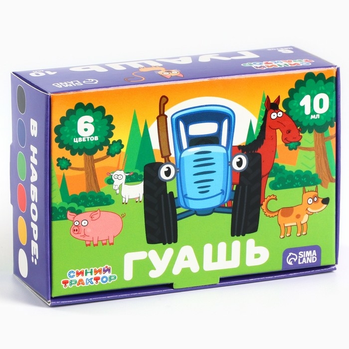 Гуашь 6 цветов по 10 мл, Синий трактор
