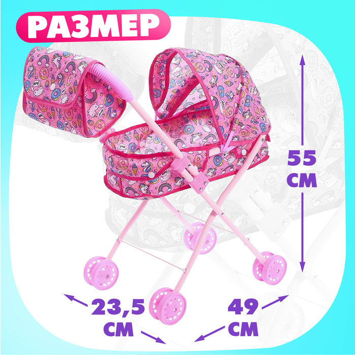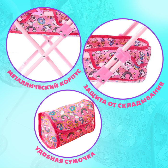 Коляска для кукол с сумкой «Сладкая поняшка» универсальная, металлический каркас