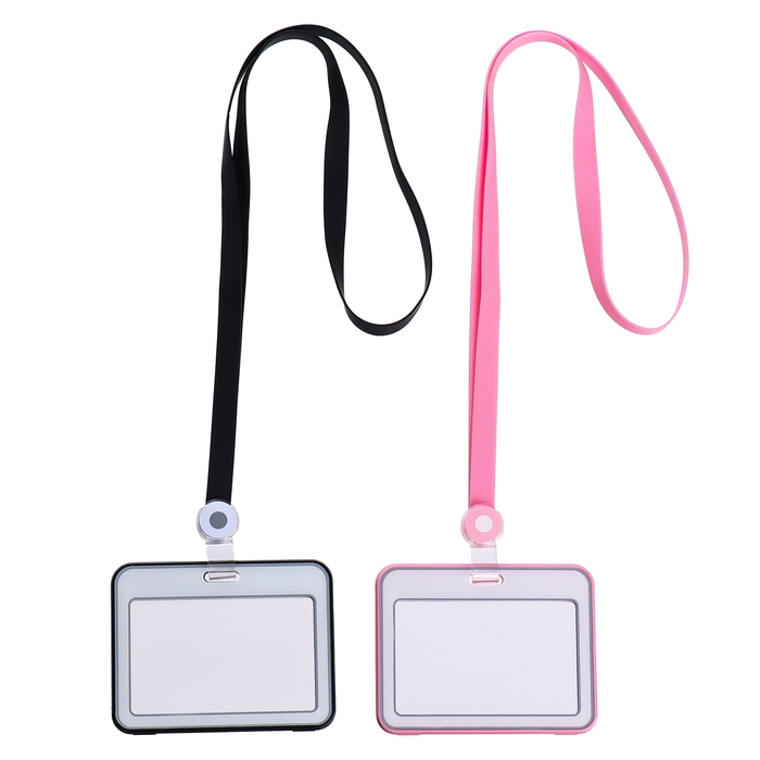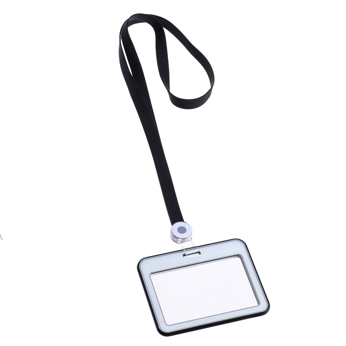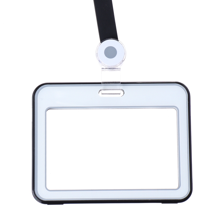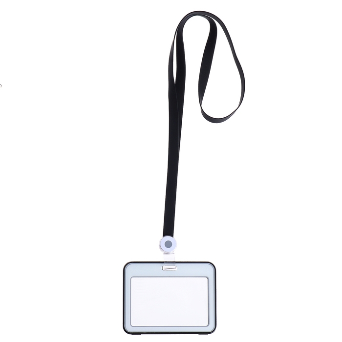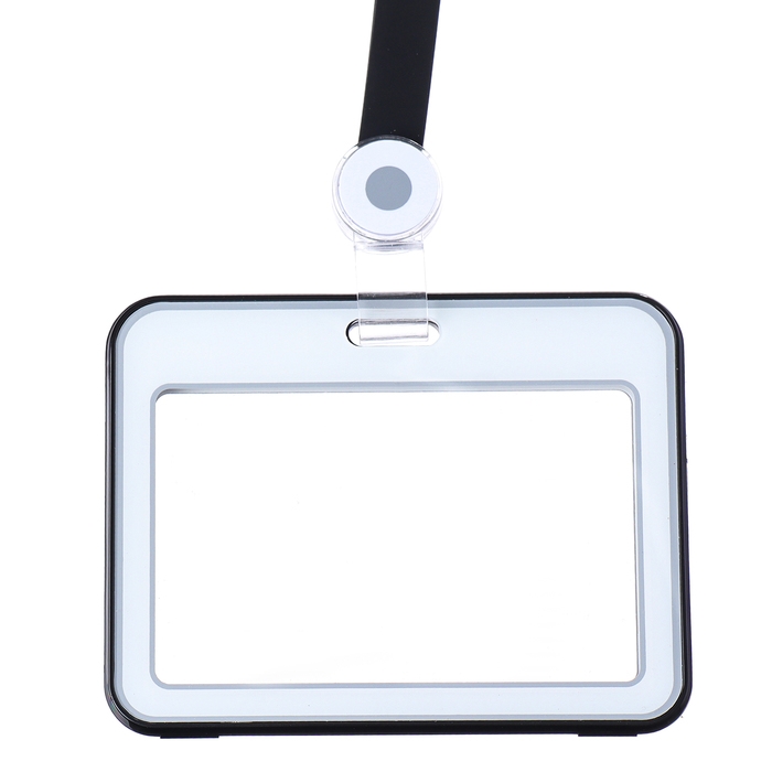 Бейдж горизонтальный, внешний, 100 х 80мм, внутренний 52 х 82мм, лента 42 см, Черный
