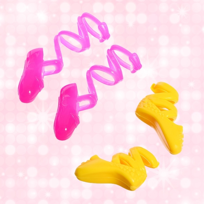 - Обувь выполнена из прочного пластика и повторяет дизайн настоящей женской обуви.