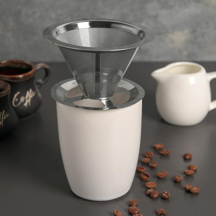 Воронка-дриппер V60 из нержавеющей стали для заваривания кофе «Пуровер», 304 сталь, 10×6 см