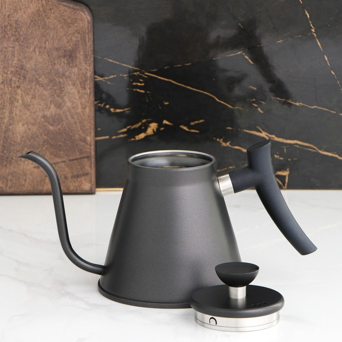 Кофейник из нержавеющей стали с длинным носиком «Пуровер», 1,2 л, 304 сталь, цвет чёрный