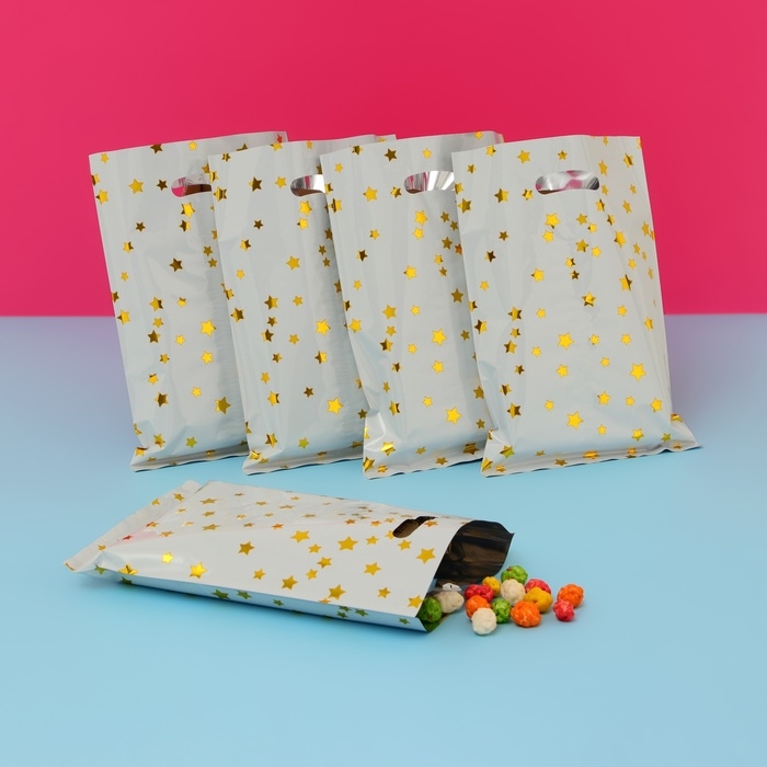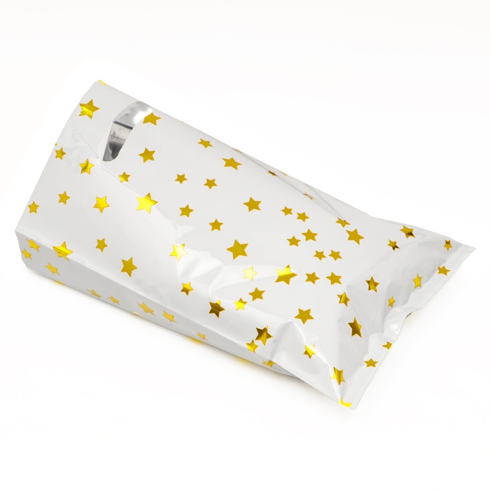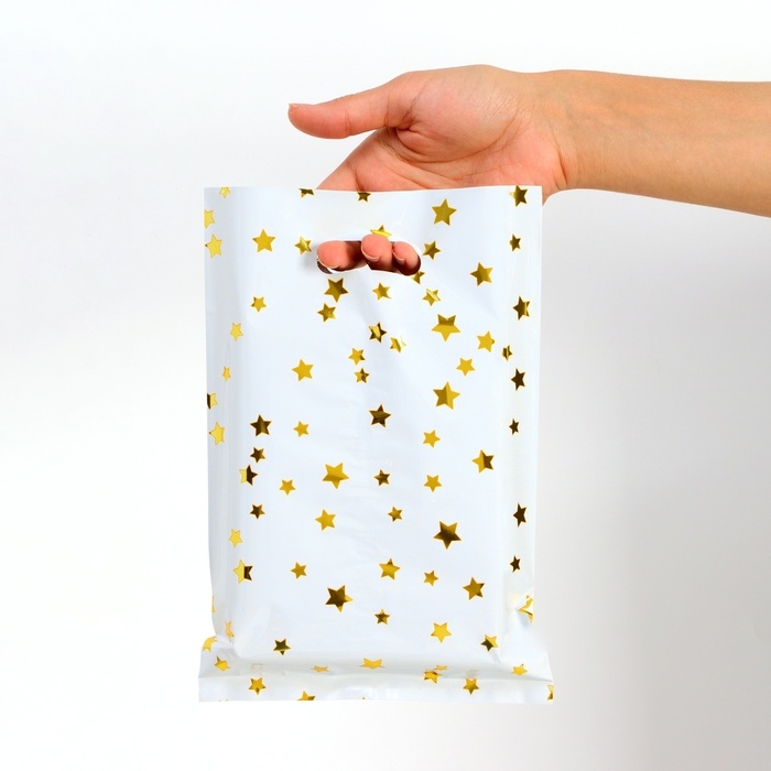 Набор подарочных пакетов, металлизированныей, "Звездочки" белый 17х25 см , 20 микрон 10 шт набор