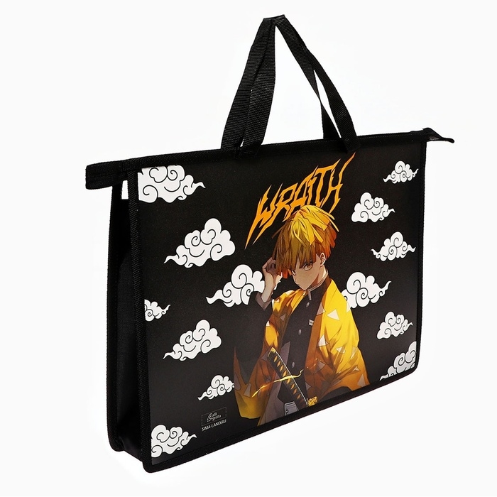 Папка с ручками А4, 335 х 235 х 55 мм, пластиковая, ручки-тесьма, Calligrata "Аниме клинок"