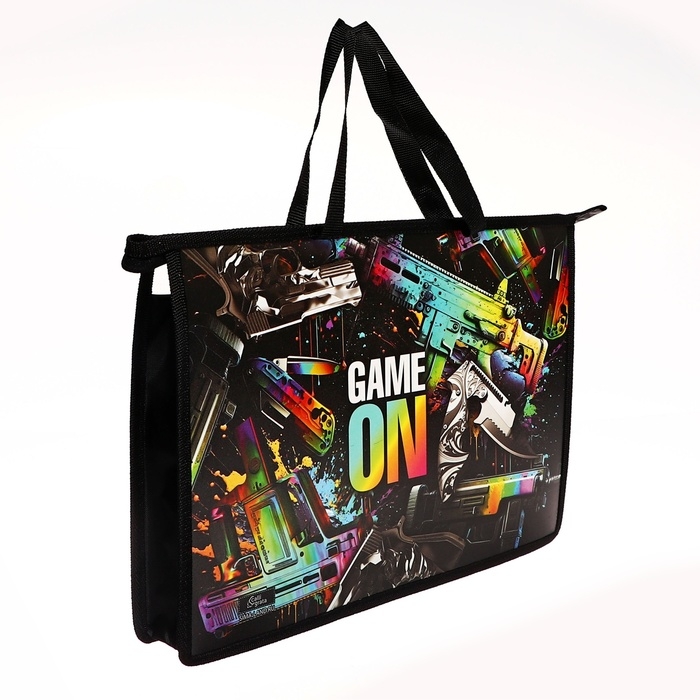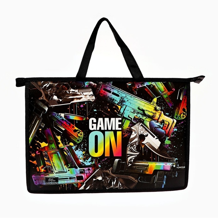 Папка с ручками А4, 335 х 235 х 55 мм, пластиковая, ручки-тесьма, Calligrata Game on
