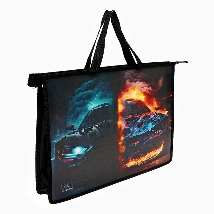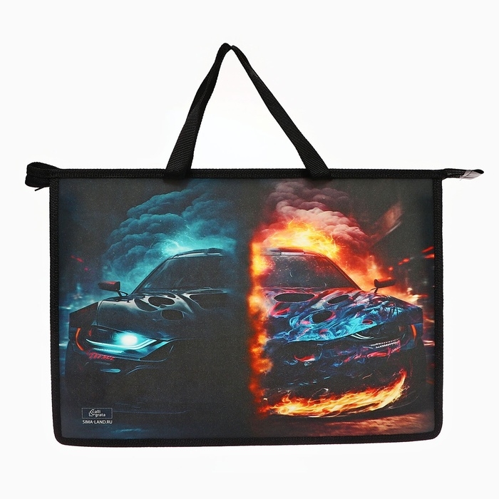 Папка с ручками А4, 335 х 235 х 55 мм, пластиковая, ручки-тесьма, Calligrata "Тачка-огонь"