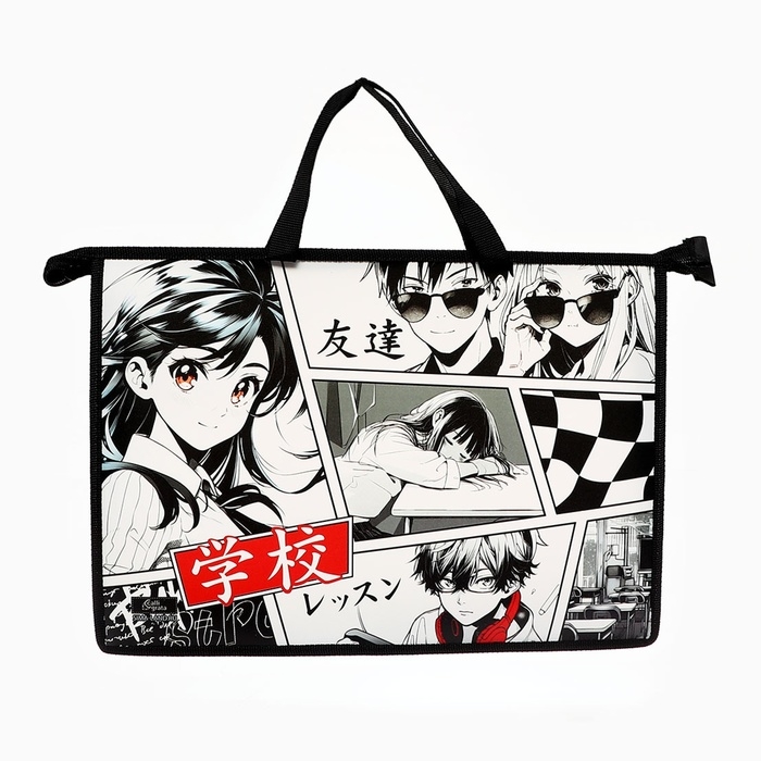 Папка с ручками А4, 335 х 235 х 55 мм, пластиковая, ручки-тесьма, Calligrata "Аниме"