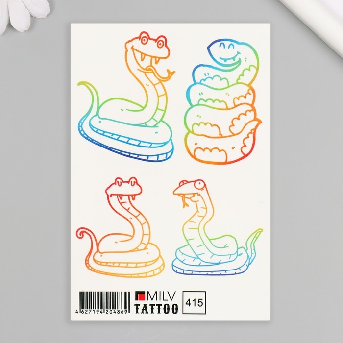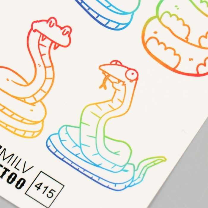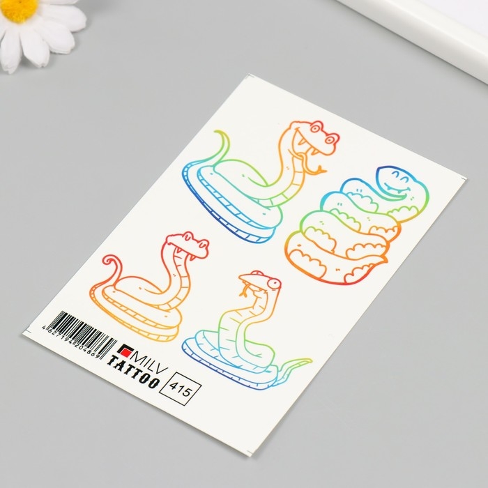 Новогодня татуировка на тело "Разноцветные змейки" 10х15 см