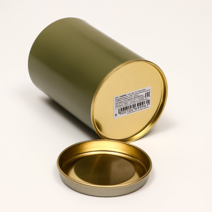 Тубус 73х110 мм (90 мм внутренняя высота), картон, хаки, металлическая крышка